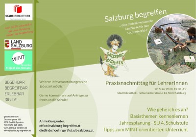Lehrerinnen und Lehrer, die Salzburg begreifen in ihrem Unterricht nutzen möchten, vereinbaren einen Termin direkt in der Stadt:Bibliothek (per E-Mail an dietlinde.hoellinger@stadt-salzburg.at).